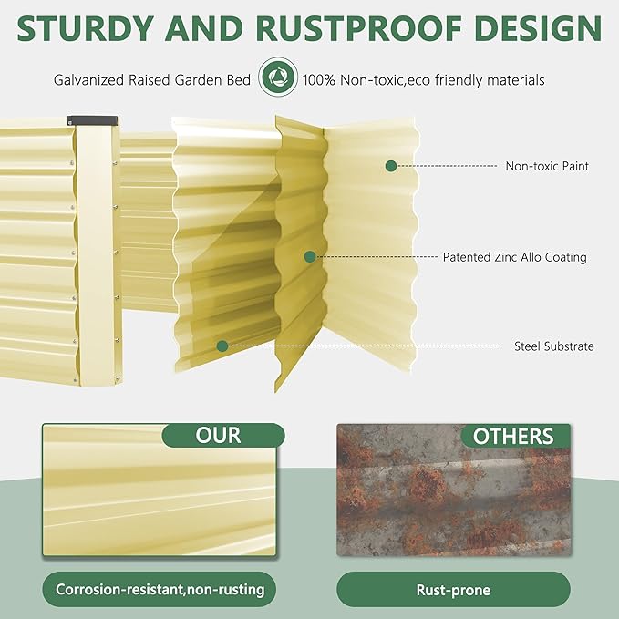 FOOWIN 2pcs 6x3x2ft Galvanized Raised Garden Bed, Planter Raised Garden Boxes Outdoor, Large Metal Raised Beds for Gardening, Garden Bed for Vegetables, Flowers, Herb, Cream Yellow