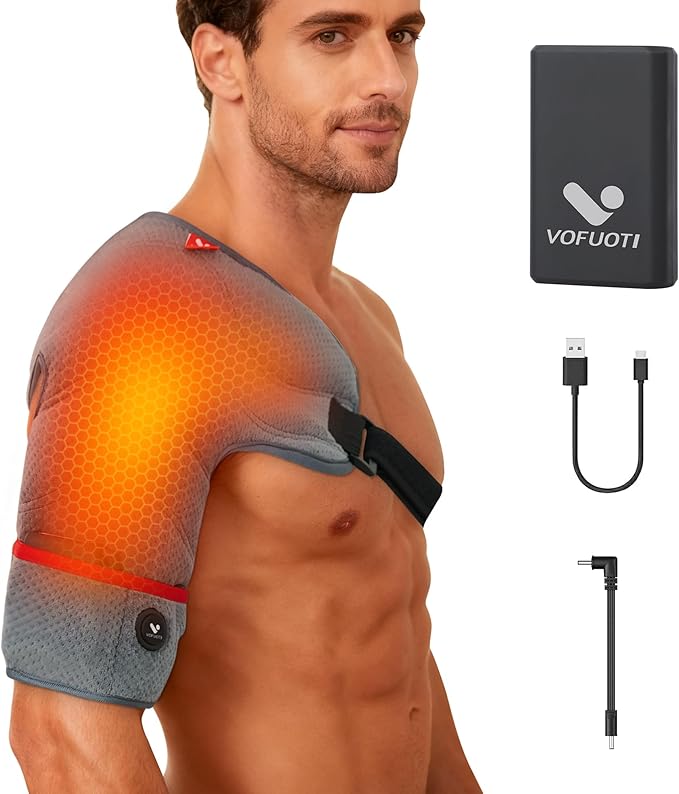 Vofuoti Shoulder Heating Pad, Portable Heated Shoulder Brace with Battery and 3 Heat Settings, Cordless Heated Shouldre Wrap for Women Men