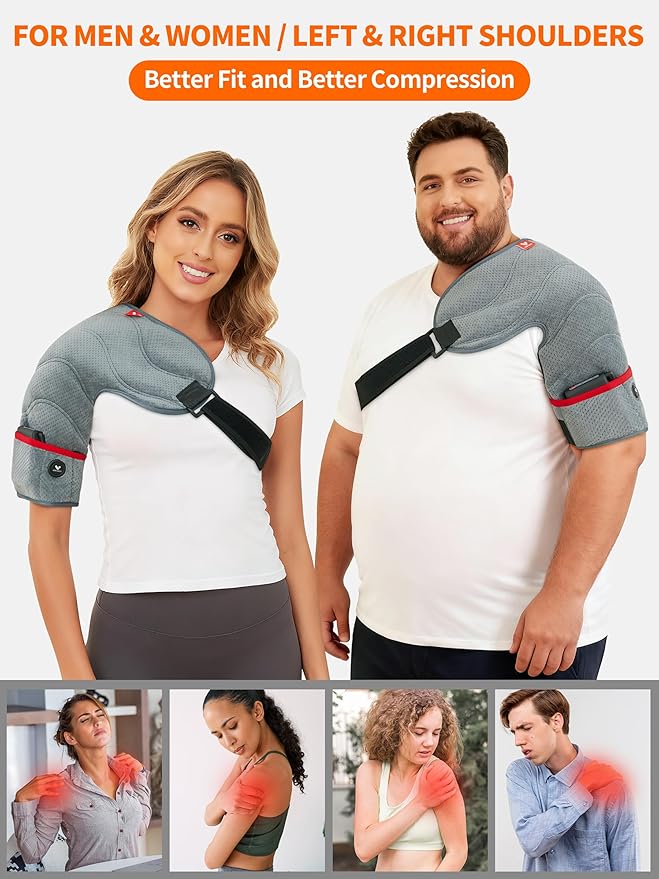 - Fit Left / Right Shoulder Men and Women: With an adjustable Size (Chest size: 25"-45", Arms 10"-20"). Crafted for most body types, this versatile pad comfortably fits both men and women. Its flexible design contours to your left or right shoulder, and arm, providing targeted heat exactly where you need it most. Electric shoulder heating pads is great choice to your family, father, mother, friend, lovers.