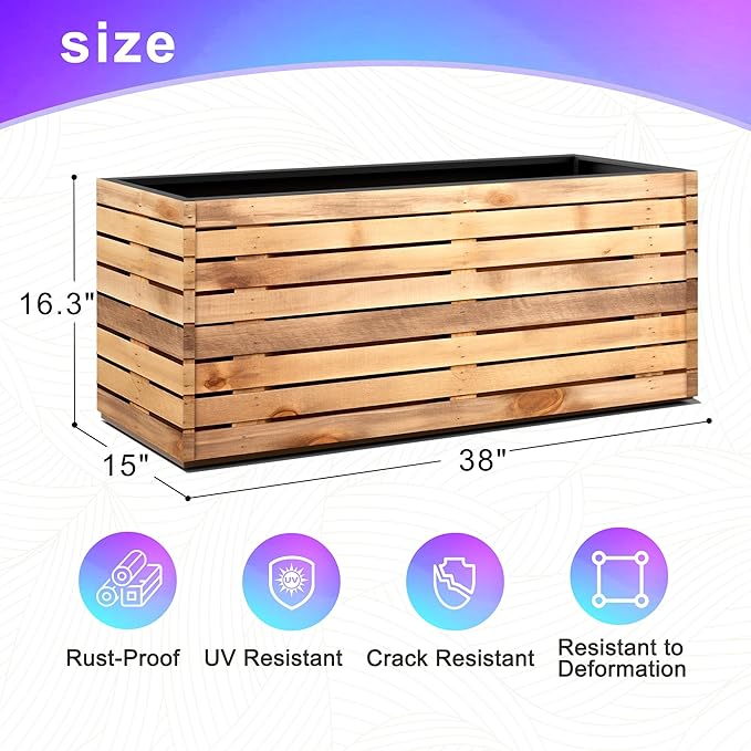 - Durable Metal Construction: Crafted from heavy-duty galvanized steel, this large rectangular planter offers exceptional strength and weather resistance. The triple-layer coating protects against rust and UV damage, making it ideal for use as planters for outdoor plants in coastal, desert, or snowy climates.