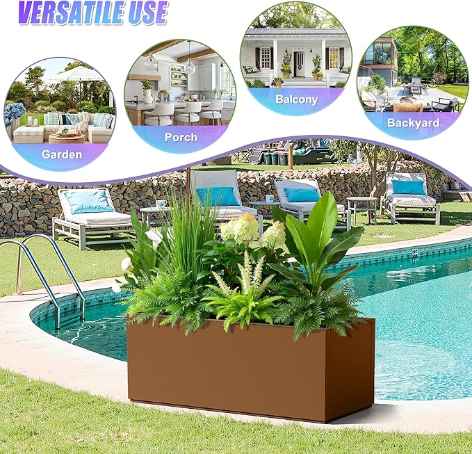 - Multi-Purpose Use: Perfect for gardens, patios, balconies, lobbies, or living spaces, this large rectangular planter accommodates a variety of plants such as small trees, flowers, and shrubs. It effortlessly complements both modern and classic decors.