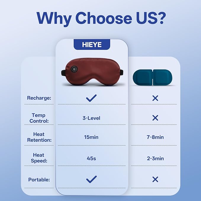- 【ULTIMATE FREEDOM WITH CORDLESS DESIGN】 Experience total convenience with our cordless and rechargeable eye mask. Powered by a long-lasting battery and easily charged via any USB port, this lightweight mask is perfect for use at home, in the office, or while traveling. No more being tied to a wall outlet.