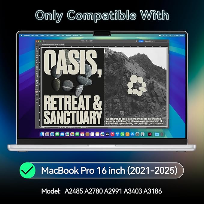 - 【Compatible Devices】Protescreen privacy screen compatible with MacBook Pro 16 in (2021-2024, M4 Pro/M4 Max/M3 Pro//M3 Max/M2 Pro/M2 Max/M1 Pro/M1 Max Chip) - Model A3186 A3403 A2485 A2780 A2991. Please check your MacBook model before ordering.