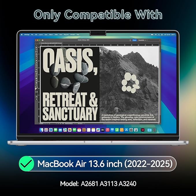 - 【Compatible Devices】Protescreen privacy screen compatible with MacBook Air 13.6 & 13 inch (Released In 2022-2025, M2 M3 M4 Chip) - Model: A2681 A3113 A3240. Please check your MacBook model before ordering.