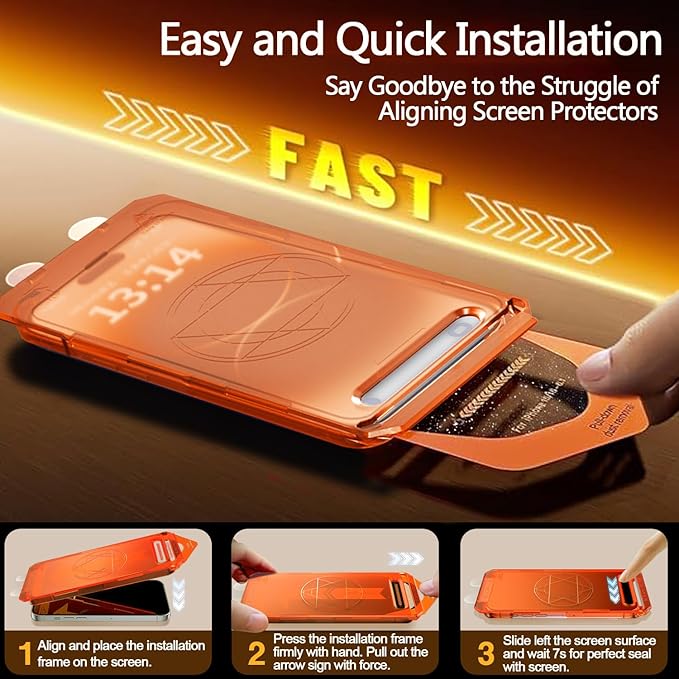 - Easy Installation: simplify the application process! Just cover and pull, the screen protector automatically aligns and takes away the dust. No more worries about alignment and bubble issues, installation has never been so easy