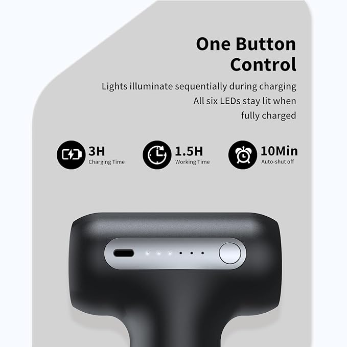 - 【Long-Lasting & Ultra-Quiet Operation】Powered by a 1500mAh rechargeable battery, this muscle massager offers up to 90 minutes of cordless use. Its quiet operation (under 50dB) ensures undisturbed relaxation at home or work, with auto-shutoff after 10 minutes for added safety
