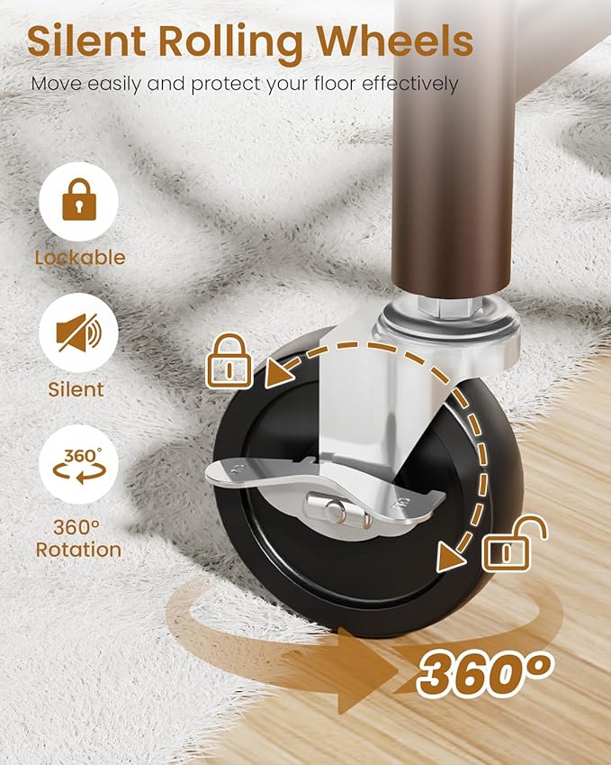 - ๐๐๐๐๐๐, ๐๐๐๐๐๐๐ & ๐๐๐พ๐๐ผ๐ฝ๐๐ ๐พ๐ผ๐๐๐๐๐: The casters of our coat rack have been carefully designed to move over a variety of floors such as hardwood, tile or carpet. Additionally, the 2 lockable wheels provide security, allowing you to keep your wardrobe rack securely in place when needed.
