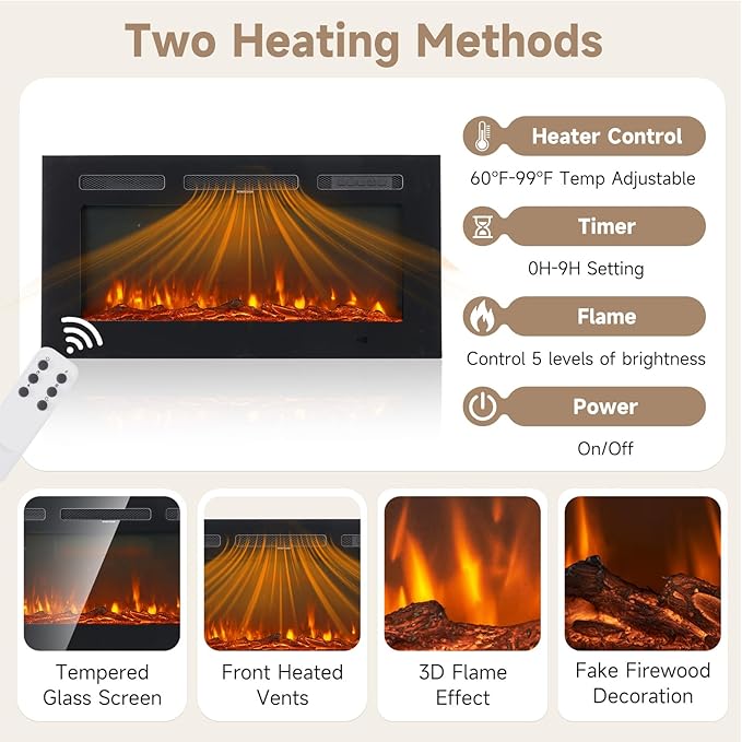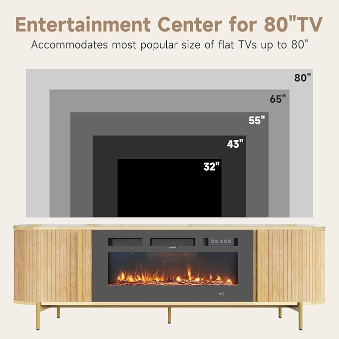 Luxury 70" Fluted Fireplace TV Stand, Oak Modern Chic Entertainment Center for TVs Up to 80", Media Cabinet with Storage, TV Console for Living Room, Natural