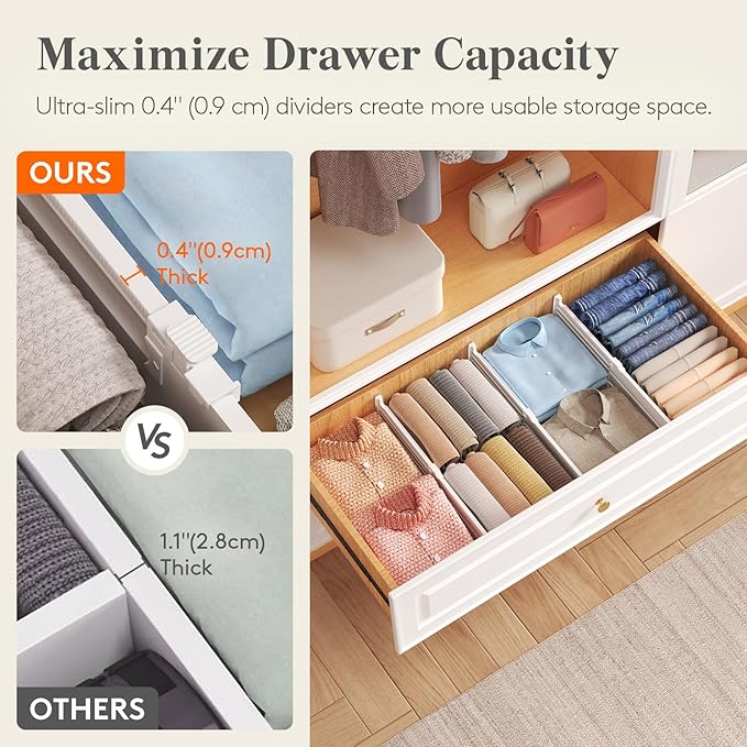 - Unwavering Stability: Our non-slip, bidirectional design actively prevents splitting or warping. Silicone pads on both sides ensure the dresser drawer separator stays steadfastly in place, providing superior, unyielding stability