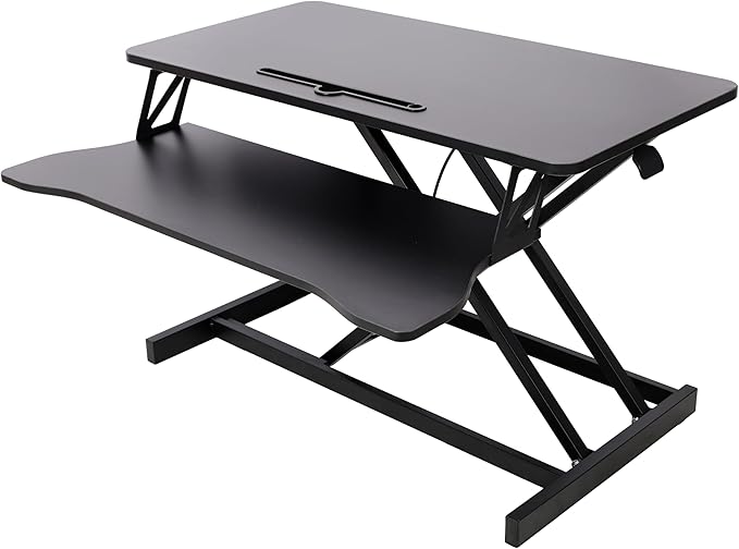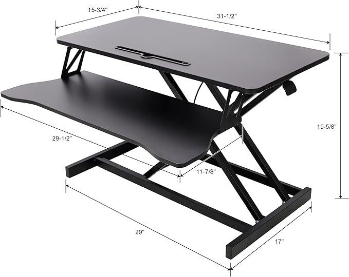 - 🏠 Ergonomic Design for Comfort: This standing desk converter elevates your monitor to eye level, promoting perfect spinal alignment and reducing neck and back strain. Its thoughtful design encourages movement and helps combat fatigue, allowing you to stay focused and productive whether you're sitting or standing during long work hours.