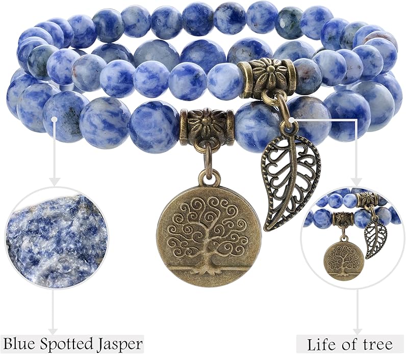 - Natural stone bracelets for women: Each beads in this fashion&beautiful bracelet are hand picked and strung on high quality elastic stretch cord to ensure the best quality. Durable and flexible.Each bracelets set with a bronze life tree and leaf charm.Great for daily wear, anniversary,party etc. Please note natural stones vary in colors. Each bead is unique. You will receive the similar item as picture shown