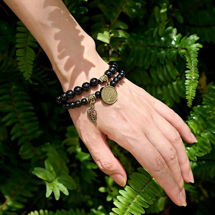 - Natural stone bracelets for women: Each beads in this fashion&beautiful bracelet are hand picked and strung on high quality elastic stretch cord to ensure the best quality. Durable and flexible.Each bracelets set with a bronze life tree and leaf charm.Great for daily wear, anniversary,party etc. Please note natural stones vary in colors. Each bead is unique. You will receive the similar item as picture shown