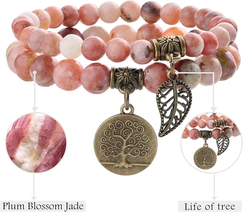 - Natural stone bracelets for women: Each beads in this fashion&beautiful bracelet are hand picked and strung on high quality elastic stretch cord to ensure the best quality. Durable and flexible.Each bracelets set with a bronze life tree and leaf charm.Great for daily wear, anniversary,party etc. Please note natural stones vary in colors. Each bead is unique. You will receive the similar item as picture shown