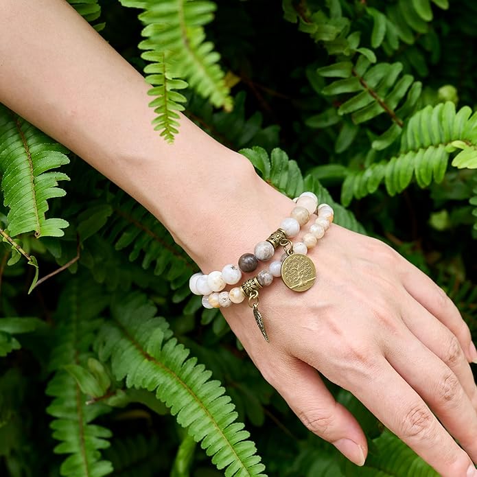 - Natural stone bracelets for women: Each beads in this fashion&beautiful bracelet are hand picked and strung on high quality elastic stretch cord to ensure the best quality. Durable and flexible.Each bracelets set with a bronze life tree and leaf charm.Great for daily wear, anniversary,party etc. Please note natural stones vary in colors. Each bead is unique. You will receive the similar item as picture shown
