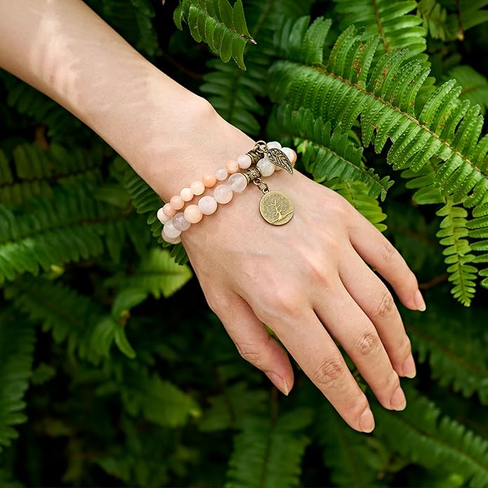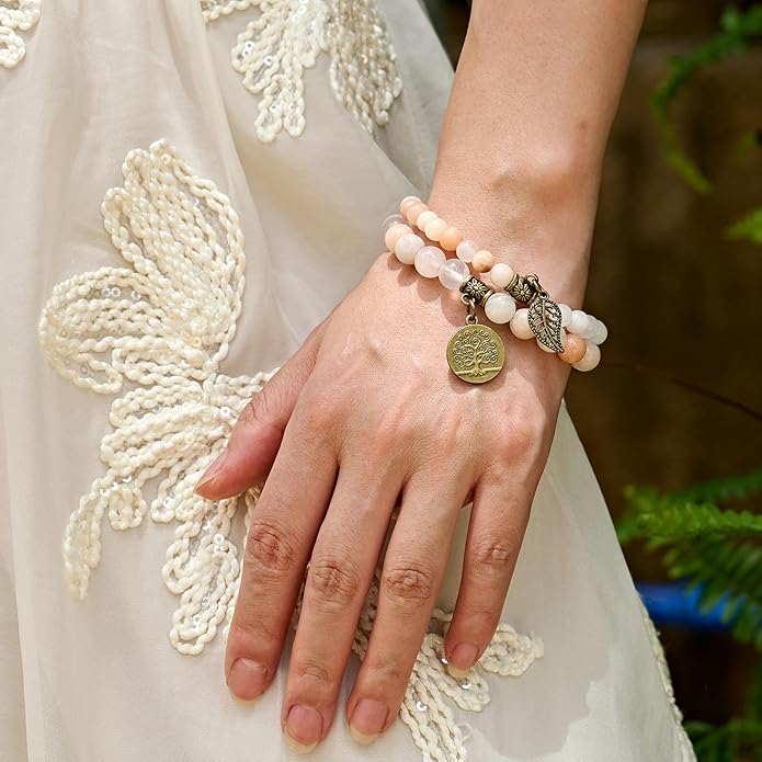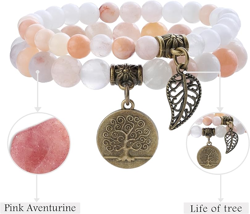 - Natural stone bracelets for women: Each beads in this fashion&beautiful bracelet are hand picked and strung on high quality elastic stretch cord to ensure the best quality. Durable and flexible.Each bracelets set with a bronze life tree and leaf charm.Great for daily wear, anniversary,party etc. Please note natural stones vary in colors. Each bead is unique. You will receive the similar item as picture shown