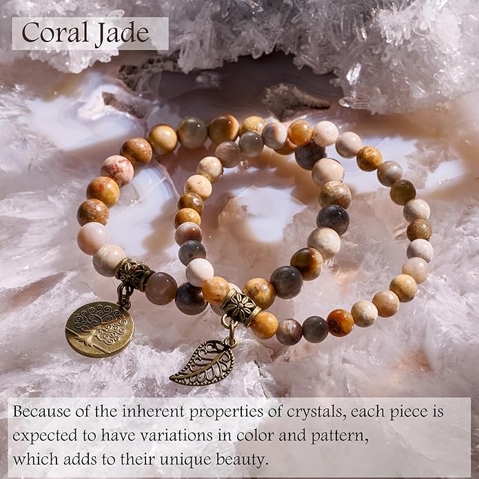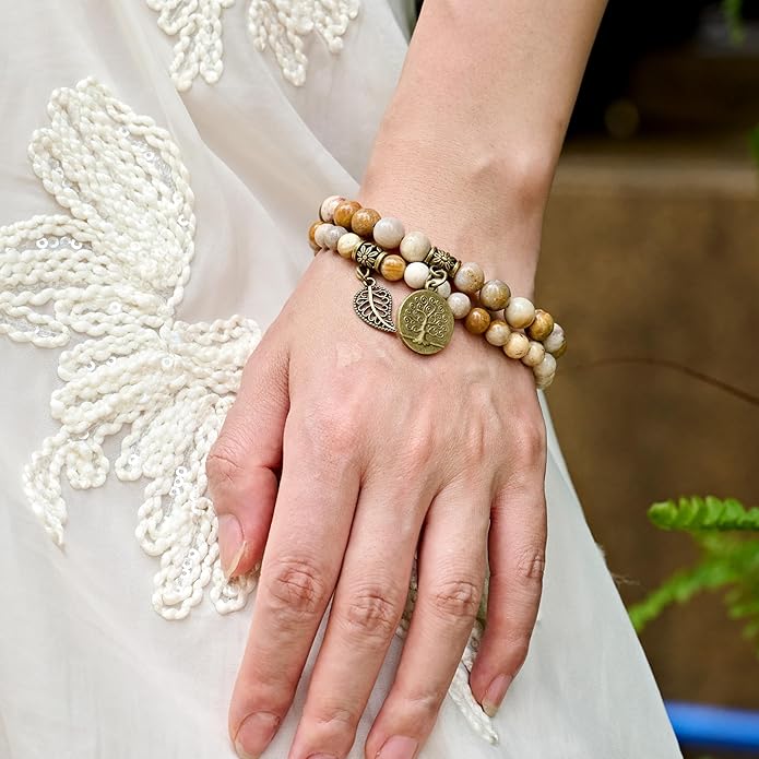 - Natural stone bracelets for women: Each beads in this fashion&beautiful bracelet are hand picked and strung on high quality elastic stretch cord to ensure the best quality. Durable and flexible.Each bracelets set with a bronze life tree and leaf charm.Great for daily wear, anniversary,party etc. Please note natural stones vary in colors. Each bead is unique. You will receive the similar item as picture shown