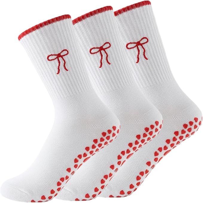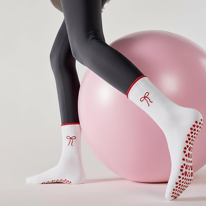 - Cute Bow Theme Design: This grippy socks are adorned with a charming bow, The bow elements stand out in pink, adding a touch of fun to the yoga socks, these bow yoga socks are not only practical but also fashionable, and can be matched with any outfit