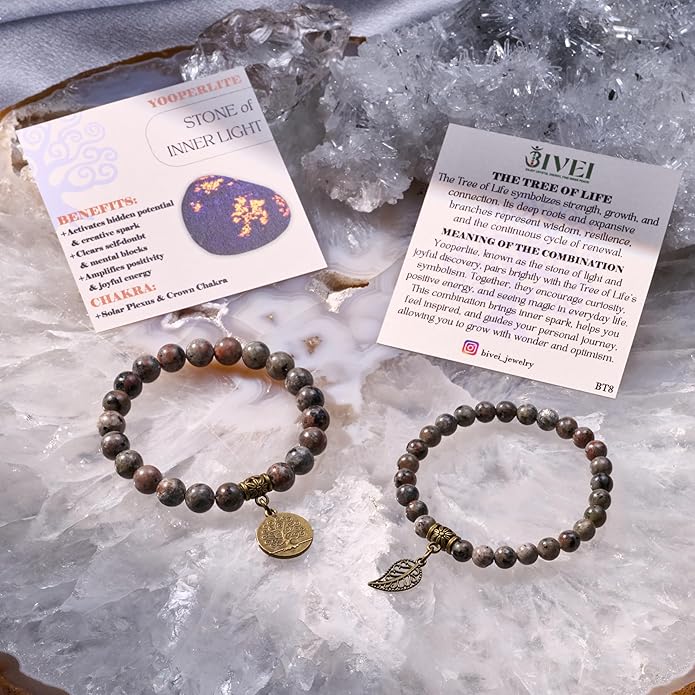 - Natural stone bracelets for women: Each beads in this fashion&beautiful bracelet are hand picked and strung on high quality elastic stretch cord to ensure the best quality. Durable and flexible.Each bracelets set with a bronze life tree and leaf charm.Great for daily wear, anniversary,party etc. Please note natural stones vary in colors. Each bead is unique. You will receive the similar item as picture shown