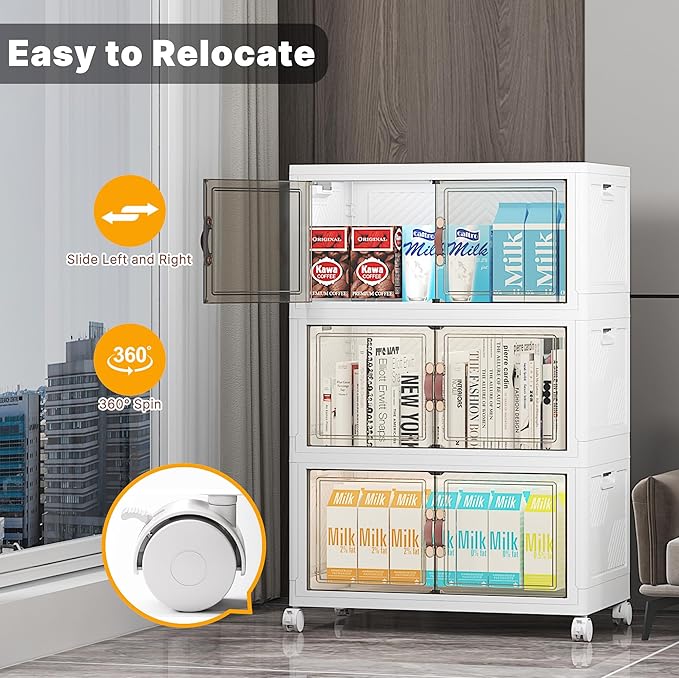 - 【Smooth Mobility with Locking Wheels】: Easily move your storage wherever you need it. These stackable storage bins with wheels feature four smooth-rolling casters, including two locking brakes, keeping your bins stable yet mobile — great for bedrooms, dorms, or offices.