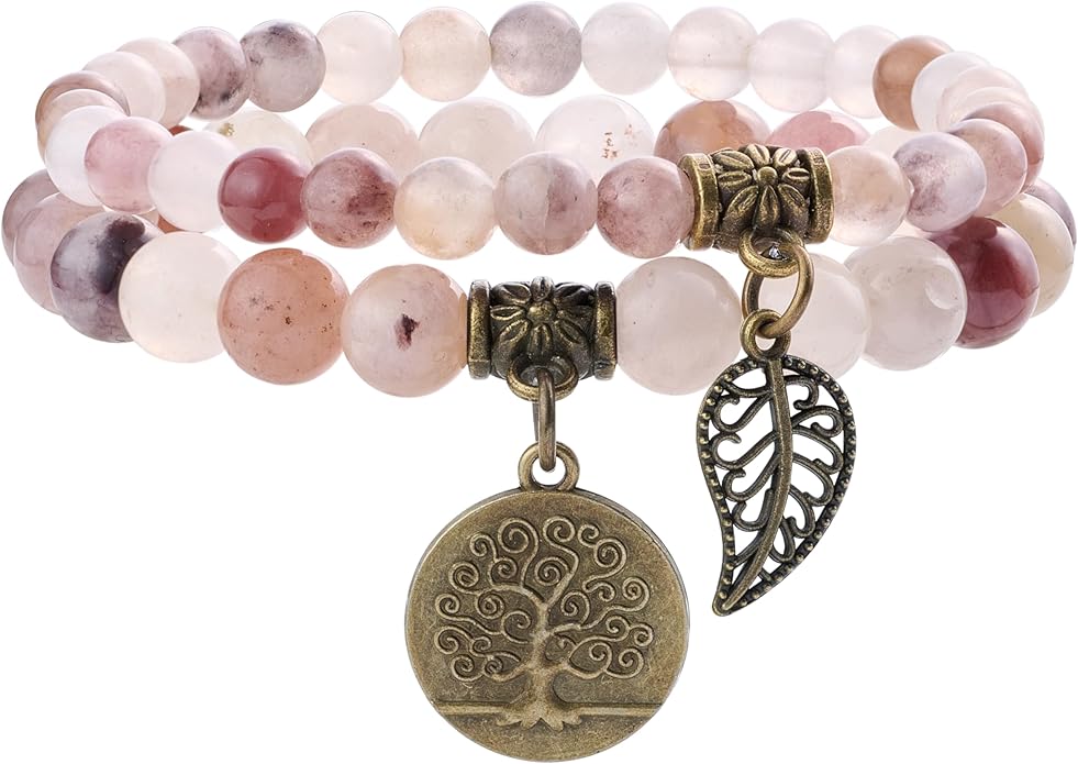- Natural stone bracelets for women: Each beads in this fashion&beautiful bracelet are hand picked and strung on high quality elastic stretch cord to ensure the best quality. Durable and flexible.Each bracelets set with a bronze life tree and leaf charm.Great for daily wear, anniversary,party etc. Please note natural stones vary in colors. Each bead is unique. You will receive the similar item as picture shown