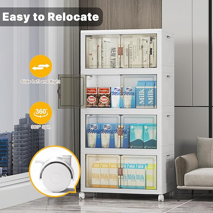 - 【Smooth Mobility with Locking Wheels】: Easily move your storage wherever you need it. These stackable storage bins with wheels feature four smooth-rolling casters, including two locking brakes, keeping your bins stable yet mobile — great for bedrooms, dorms, or offices.