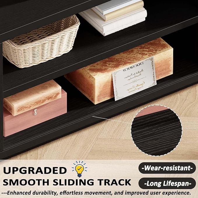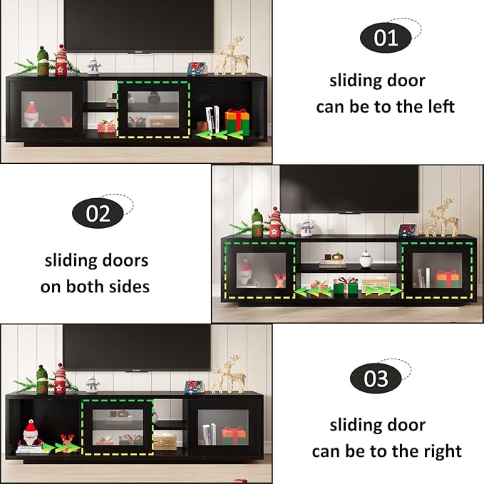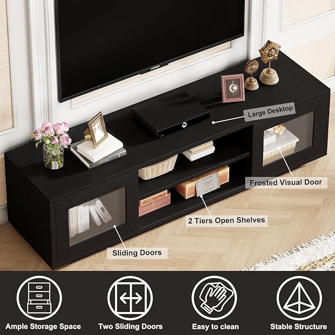 - 【Elegant Sliding Door】 The wood entertainment center features frosted sliding doors that add elegance while protecting privacy and hiding clutter. The sliding design keeps items free to take and ensures easy access to media devices and accessories.