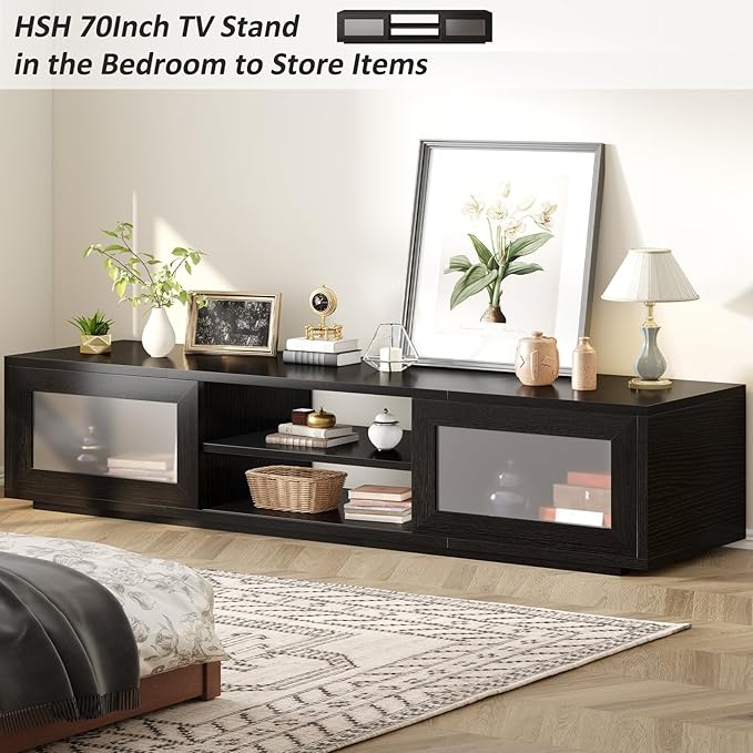HSH Black TV Stand 70 Inch,Modern TV Console for Living Room and Under TVs Cabinet with Storage,Entertainment Center with Sliding Doors for 75" TVs,Media Console for Bedroom