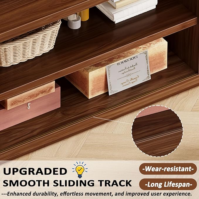 - 【Elegant Sliding Door】 The Wooden Media Console features frosted sliding doors that add elegance while protecting privacy and hiding clutter. The sliding design keeps items free to take and ensures easy access to media devices and accessories.