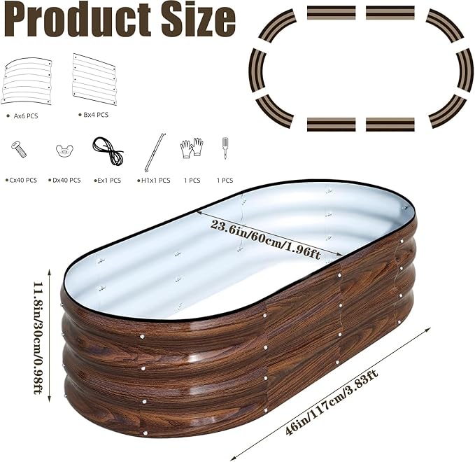 - Suitable Size for Your Garden:The size of this raised gardening bed is 4x2x1ft=47.24*23.62*11.81 in. The galvanized raised garden bed is designed to fulfill all your outdoor planting