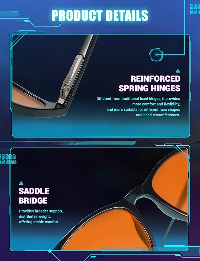 - Excellent Material - Ultra-lightweight and flexible material for durability and comfortable long-term wearing. Casual frame design keeps you looking professional and stylish while working or playing video games