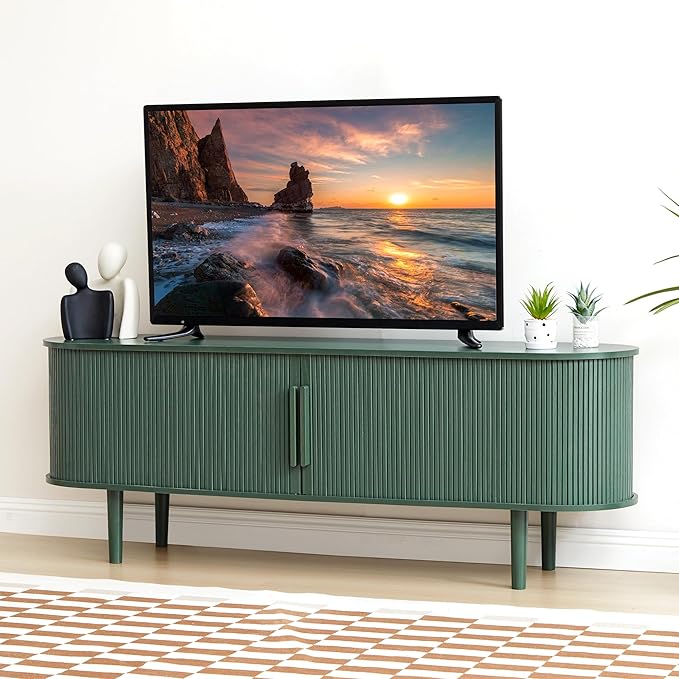 TV Stand, Media Console Table with Sliding Door and Storage Compartment, Modern Entertainment Center with Storage for Living Room, Bedroom, Home Office (Green)