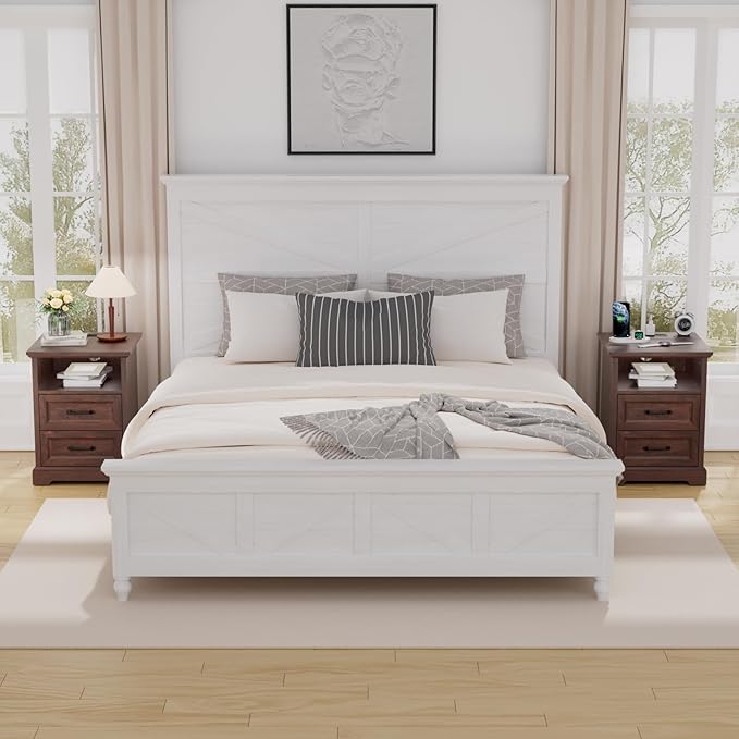 - 【Convenient Charging Station】Farmhouse nightstand featuring a built-in charging station. Equipped with 2 USB ports and 2 AC power outlets, it ensures your devices are always charged and ready to go. The back panel includes a cable management hole, keeping your space neat and organized. This smart design not only saves time but also enhances the tidiness and comfort of the bedroom. It's the perfect companion for modern living.