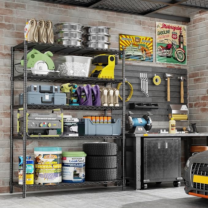 - 2000 LBS 5 tier Storage Shelves: Garage Shelving features thickened heavy steel columns, supporting up to 400 lbs per layer and a total capacity of 2000 lbs; It finish resists water, rust and corrosion, ideal for supplies in garage, kitchen, laundry room
