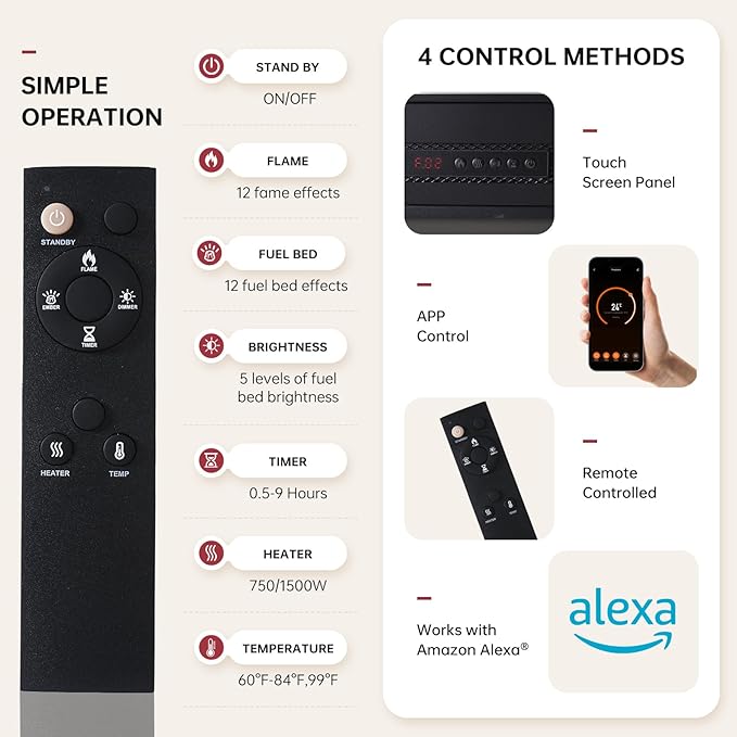 - Easy Installation: The TV stand with fireplace is simple to assemble as we offer illustrated and step-by-step instructions for easy to set up. Besides, all parts you need are clearly numbered for easy identification.