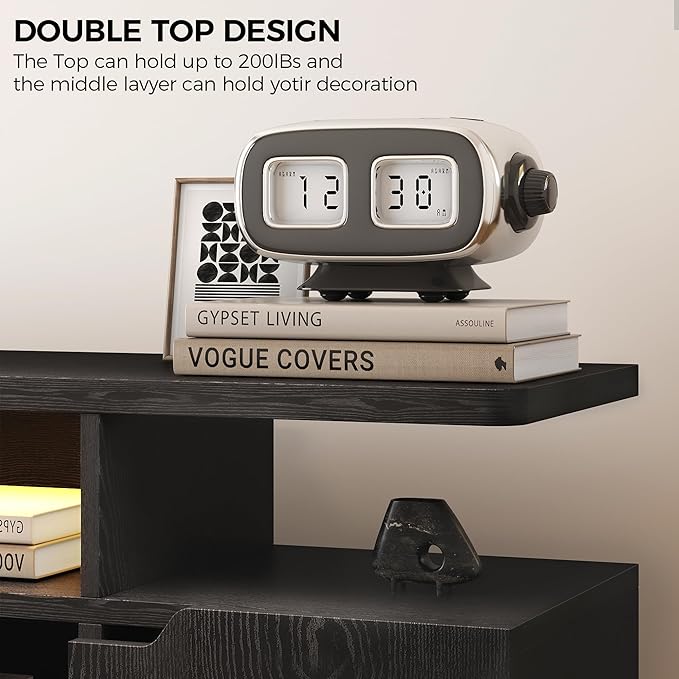 - Large Storage Space: The modern Entertainment Center features a spacious top, open shelves, large-capacity storage cabinets and drawers, providing ample storage space for your media equipment, gaming consoles, DVDs, potted plants, and more