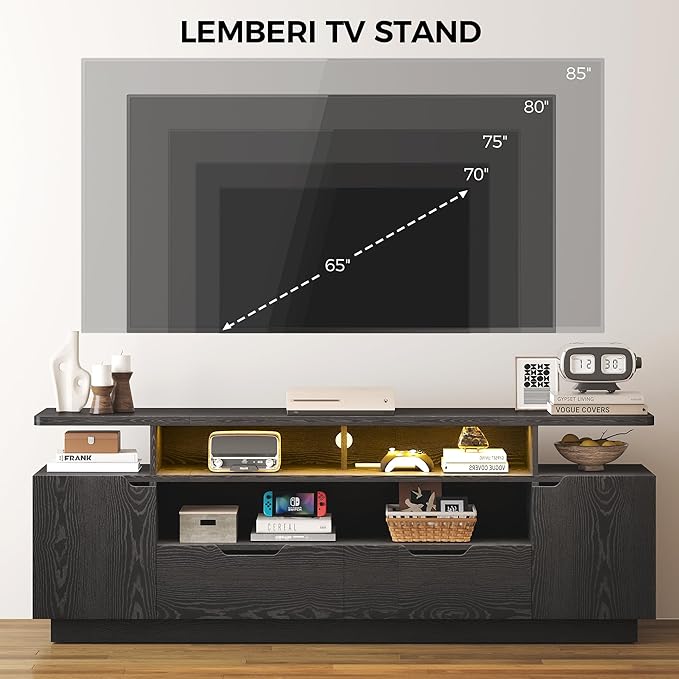 - Mordern TV Cabinet: Designed for TVs 85 inches and larger, this modern TV stand easily blends into any home. Its natural wood grain finish adds a touch of warmth and elegance to any space
