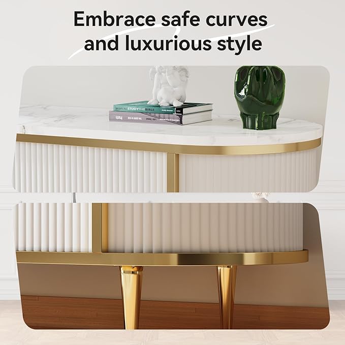 - Unique and Luxury Design: Featuring a distinctive wave-like fluted panel and a curved profile, this fluted TV stand is designed for easy integration with modern furniture. Its faux marble top conveys a sense of luxurious yet lightweight feel