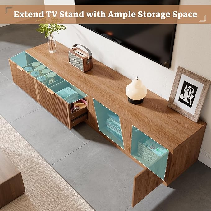 Extendable TV Stand with Storage Cabinet Extra Long, Large Wood TV Media Console Fluted Television Stands with Adjustable Shelf and Drawers for Living Room, Rustic Brown (64.57" W-98.43" W)