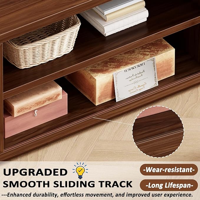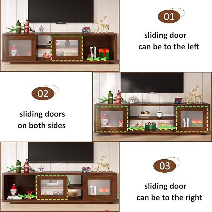 - 【Elegant Sliding Door】 The Wooden Media Console features frosted sliding doors that add elegance while protecting privacy and hiding clutter. The sliding design keeps items free to take and ensures easy access to media devices and accessories.
