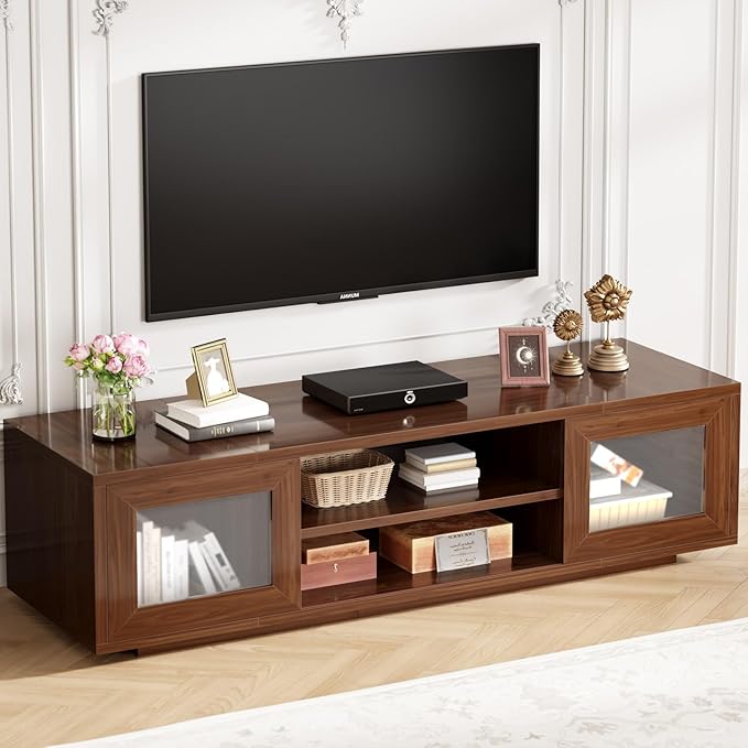 - 【Spacious Design for Large TVs】 The large Walnut Wood TV Console measures 55.1" L × 15.7" W × 18.1" H and supports flat screen TVs up to 60 inches. Its wide TV console top provides ample space for both your television and decors in your farmhouse living rooms, bedrooms, or entertainment areas.